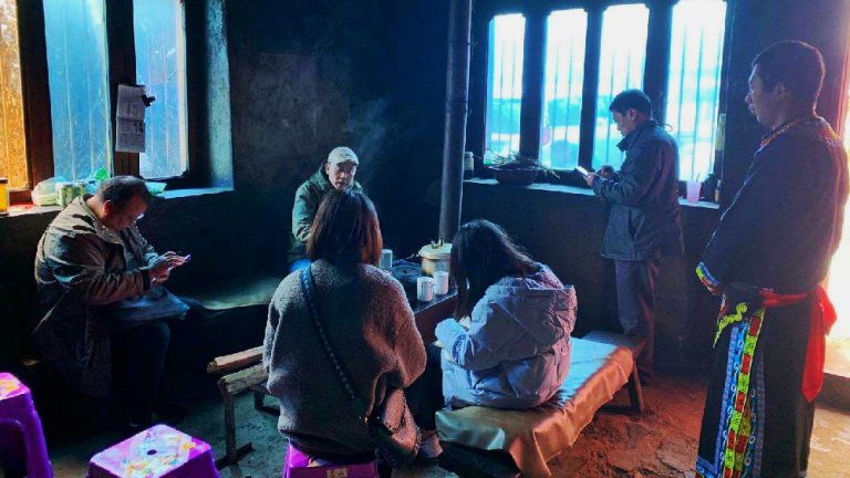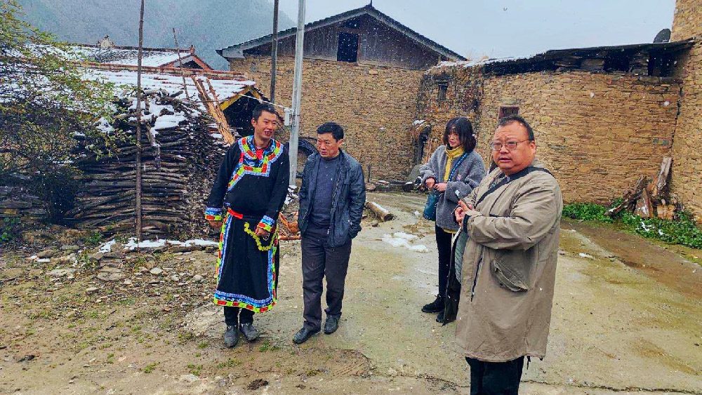 茂县党校常务副校长胡庆勇带领教研组,冒着严寒,到屋基寨进行现场调研。